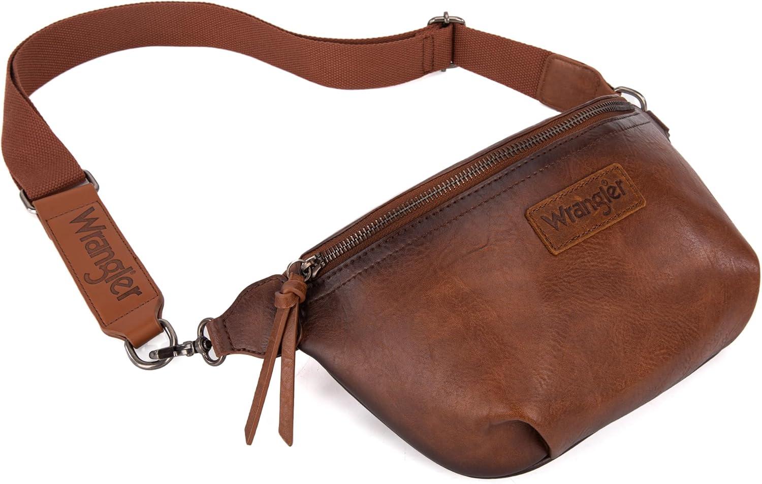 Wrangler Large Fanny Packs for Women Waist Bag Travel Belt Bags Crossbody Sling Purse Brown(B-Distressed Brown)
