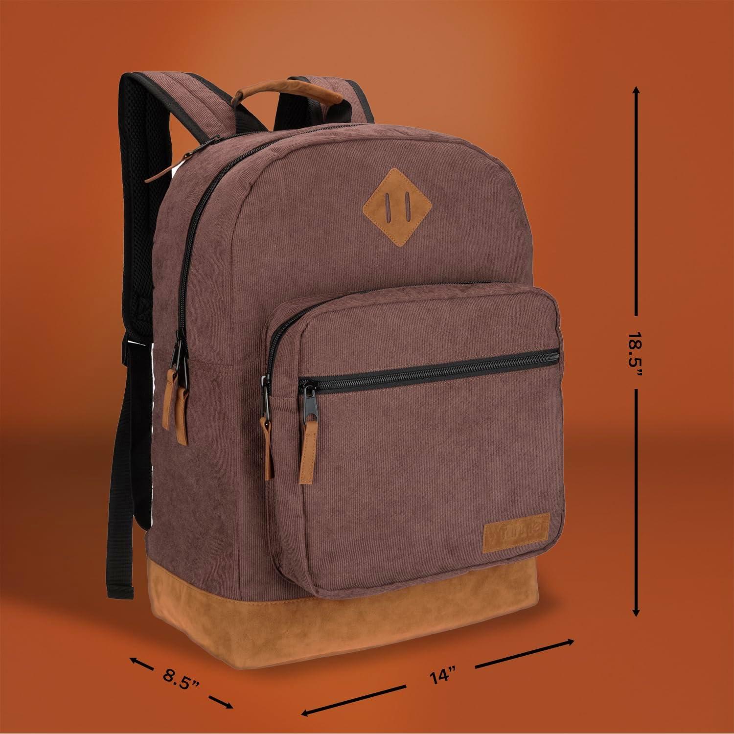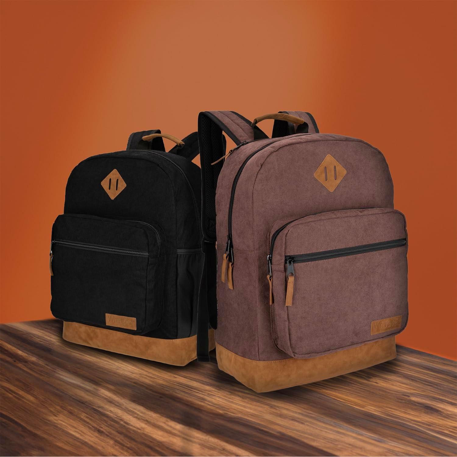 Wrangler Yellowstone Sturdy Backpack for Travel Classic Logo Water Resistant Casual Daypack for Travel with Padded Laptop Notebook Sleeve (Wild West)(Brown Cord)