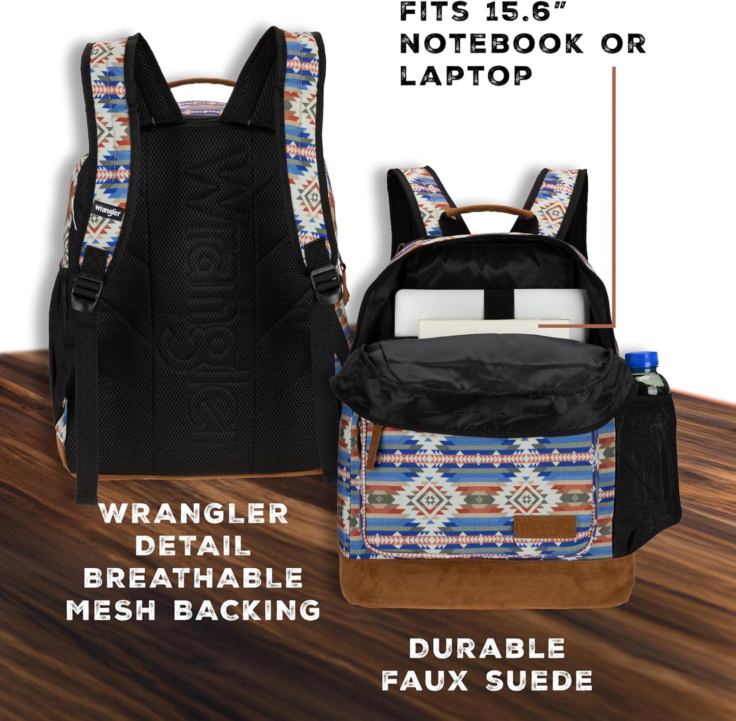 Wrangler Yellowstone Sturdy Backpack for Travel Classic Logo Water Resistant Casual Daypack for Travel with Padded Laptop Notebook Sleeve (Wild West)(New Retro)