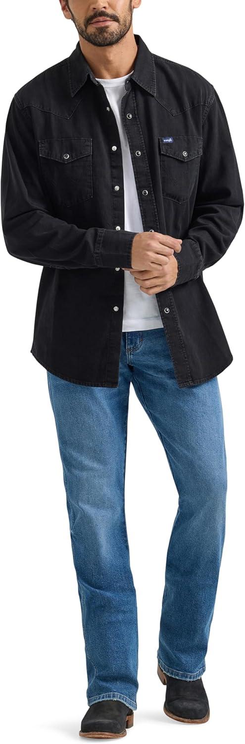 Wrangler Men’s Denim Light Wash Long Sleeve Snap Shirt(Black Denim)