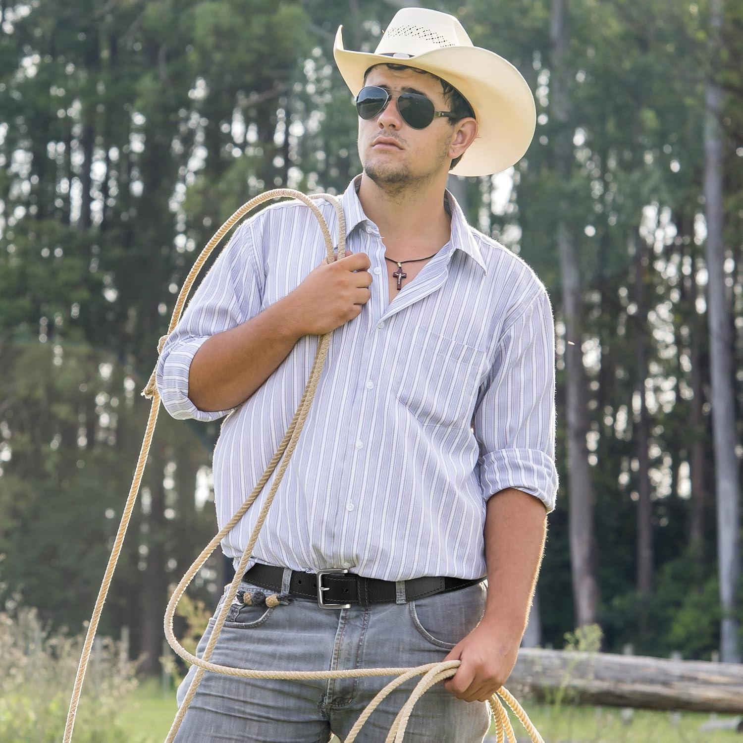 Wrangler Men’s Leather Belt, Country Casual Every Day Belt for Jeans(Black)
