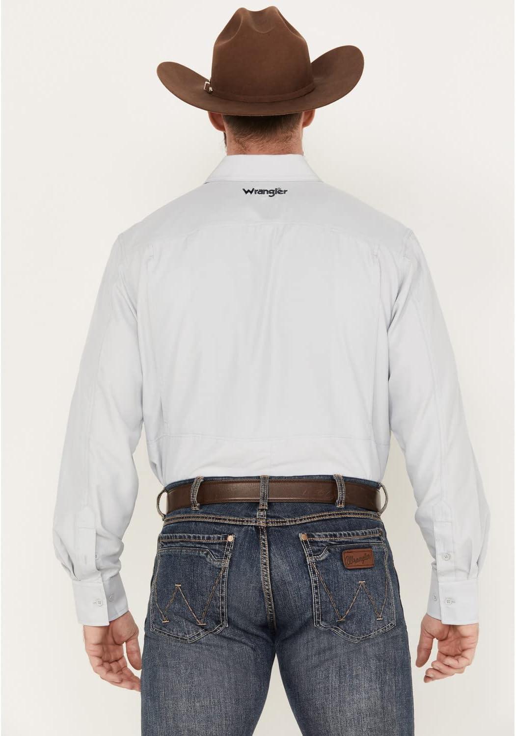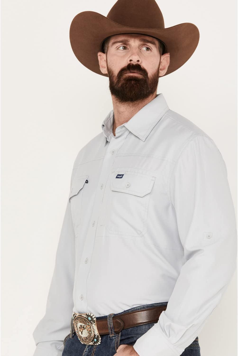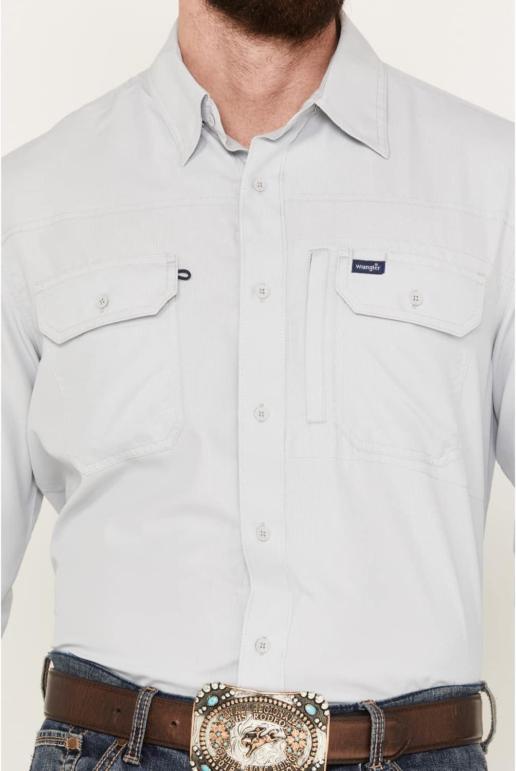Wrangler Men’s Performance Long Sleeve Button-Down Shirt Tall Light Grey XX- Tall