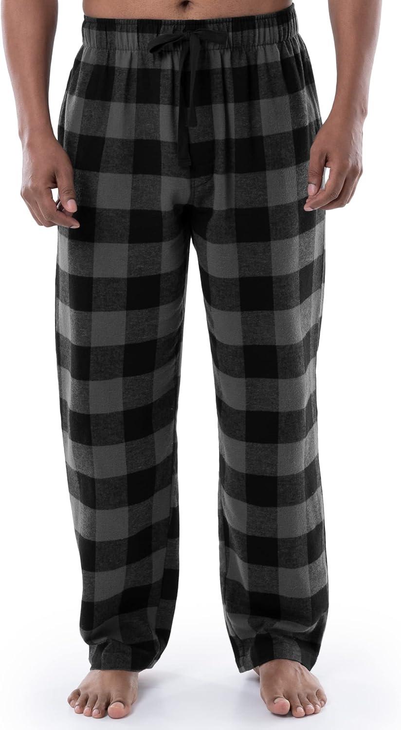 Wrangler mens Waffle Knit Top and Flannel Pajama Pant Pajama Sleep Set(Charcoal/Plaid)