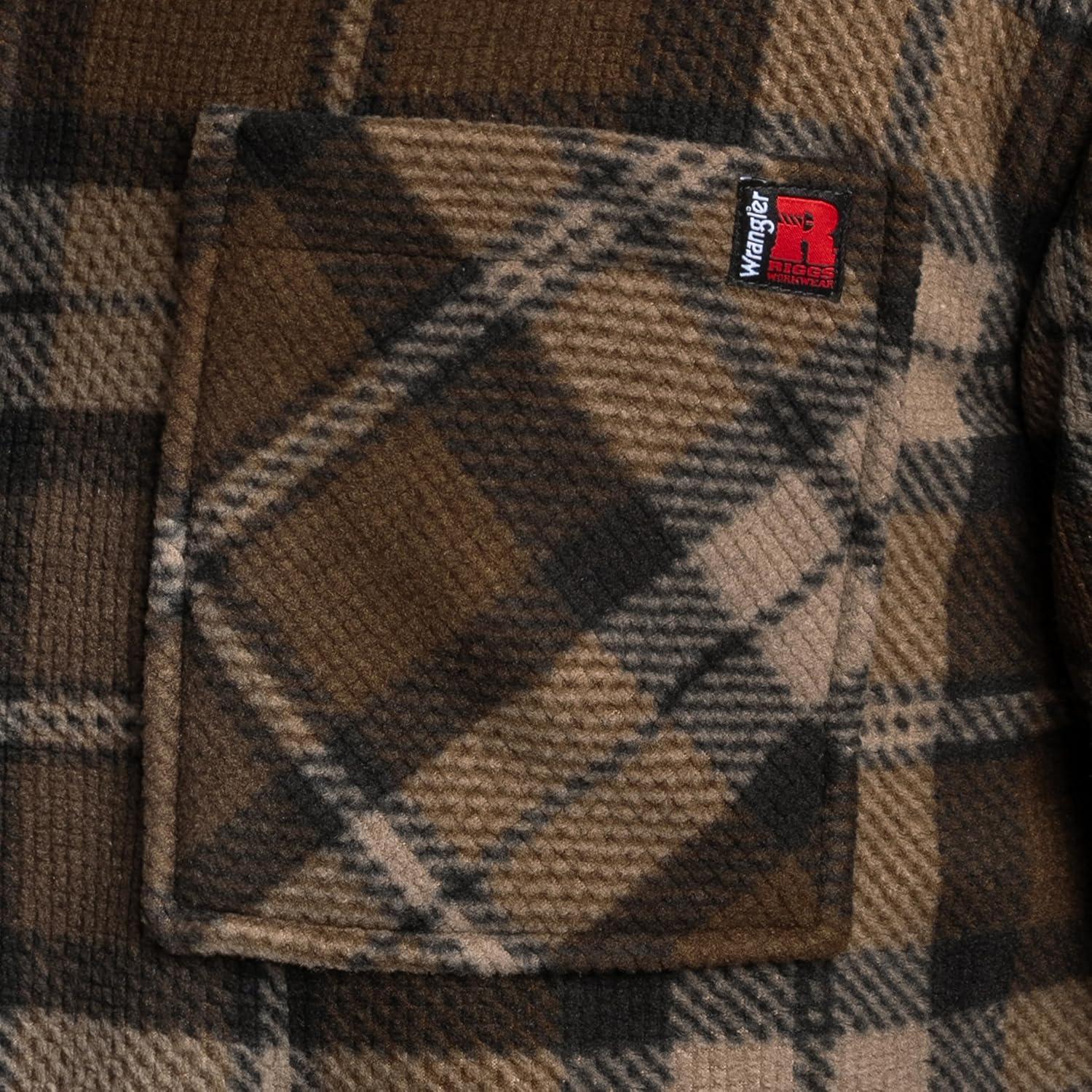Wrangler Mens Wrangler Riggs Men’s Burley Sherpa Bonded Flannel Overshirt(Beige/Multi Plaid)