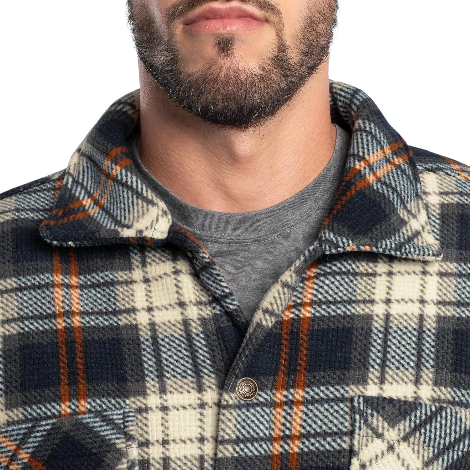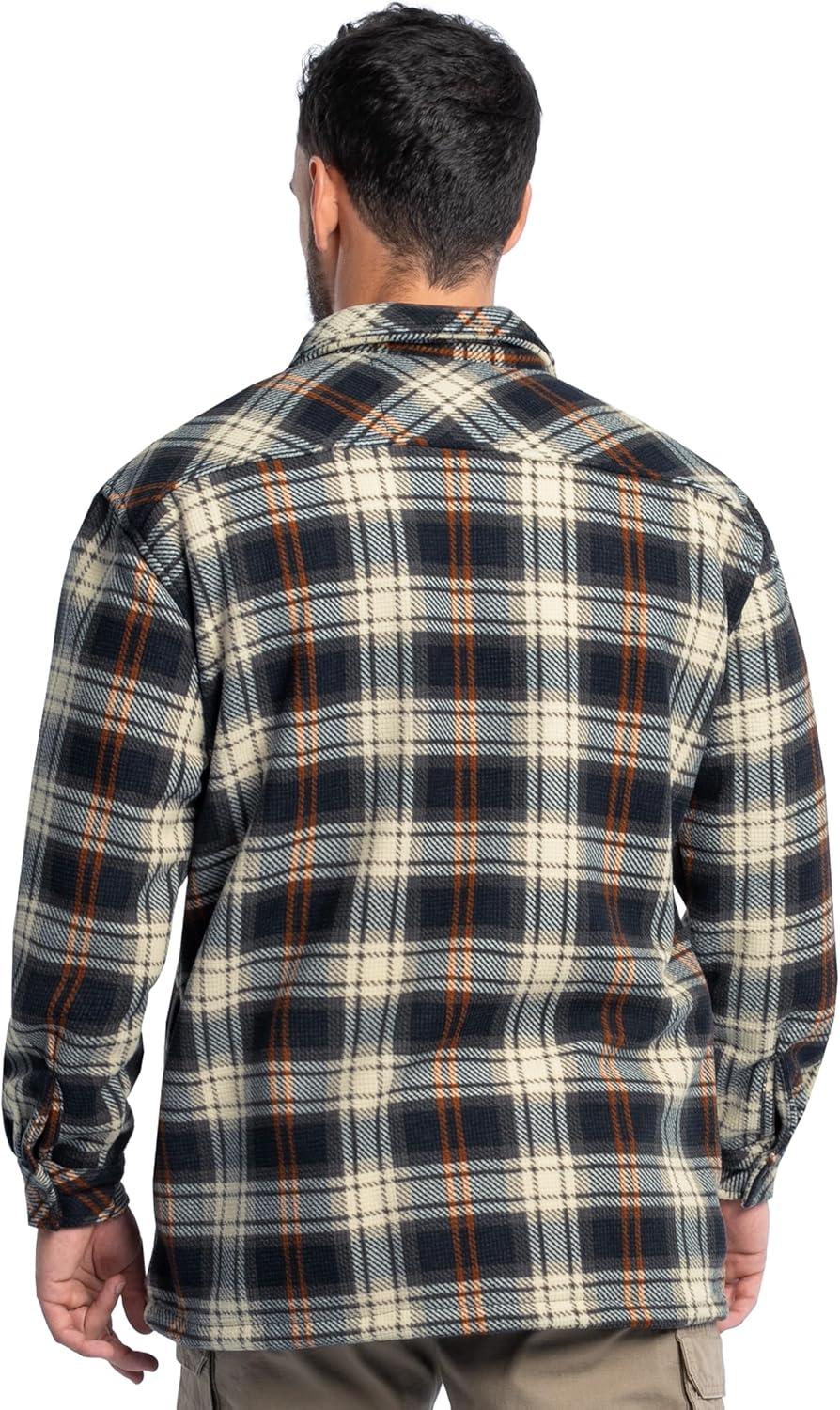 Conquer cold-weather days in comfort and rugged style with the Wrangler RIGGS Workwear Burley Sherpa Bonded Flannel Overshirt. Built for hardworking men who demand warmth, durability, and function, this heavyweight overshirt combines the classic look of flannel with the insulated comfort of sherpa. Crafted from recycled bonded flannel fabric, it delivers reliable warmth while supporting sustainable materials. The sherpa lining traps body heat for superior insulation, while the dual chest pockets and side seam hand warmer pockets add both utility and comfort. A durable metal snap front closure ensures easy on-and-off wear, perfect for layering over tees, hoodies, or thermals. Designed with Wrangler RIGGS durability, this overshirt is ideal for cold-weather job sites, ranch work, outdoor projects, or everyday casual wear. Whether you’re working outdoors, chopping wood, or enjoying a weekend by the fire, the Burley Sherpa Bonded Flannel Overshirt provides the perfect balance of rugged warmth and timeless Wrangler style.