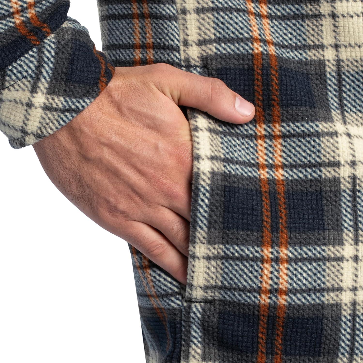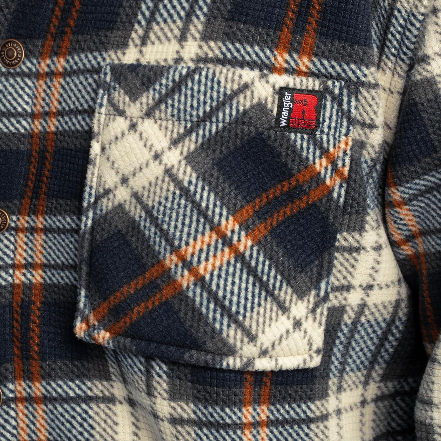 Wrangler Mens Wrangler Riggs Men’s Burley Sherpa Bonded Flannel Overshirt(Navy/Multi Plaid)
