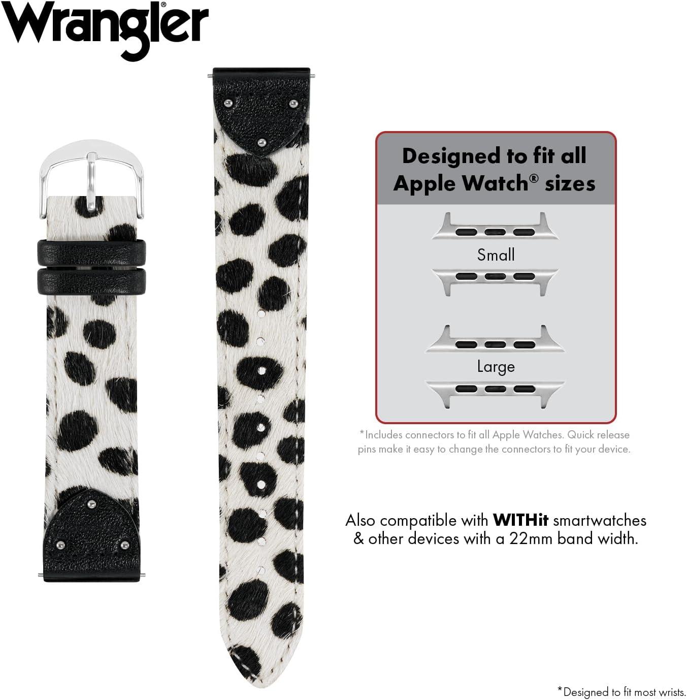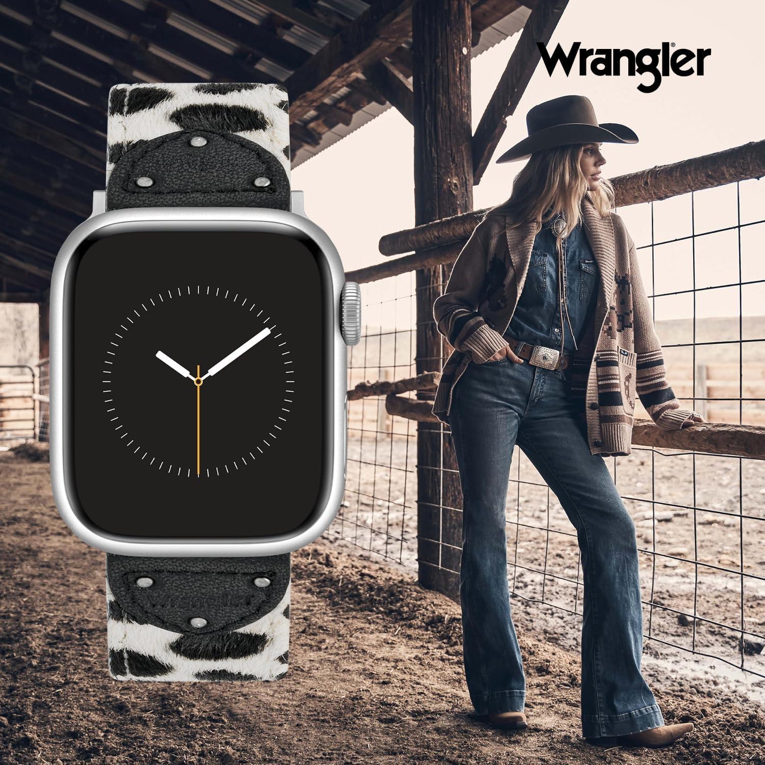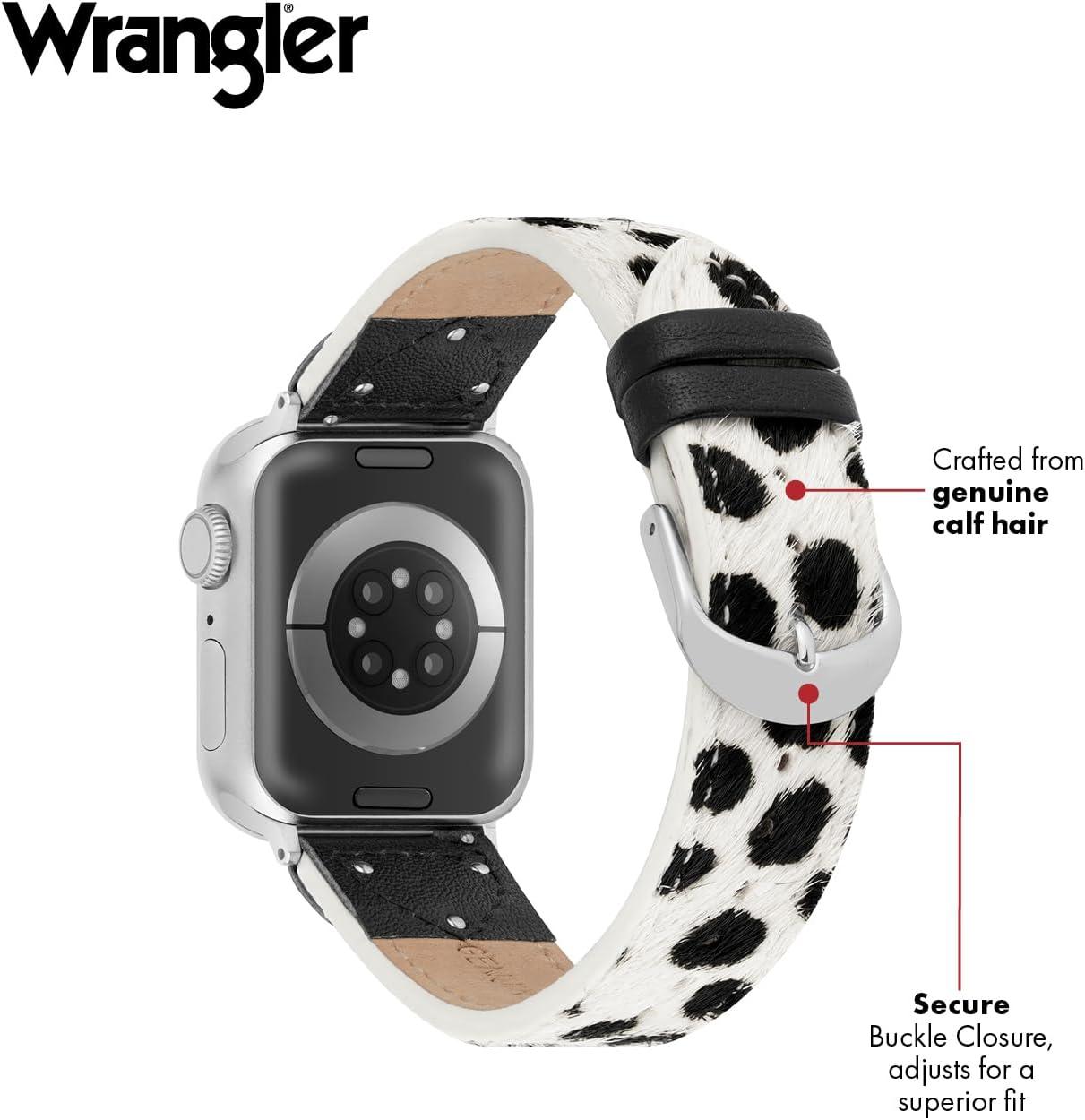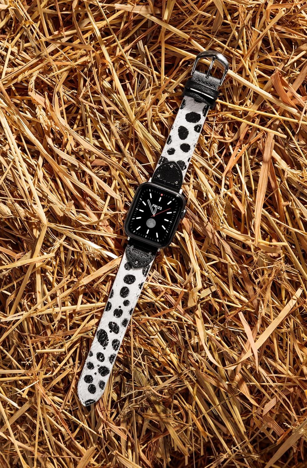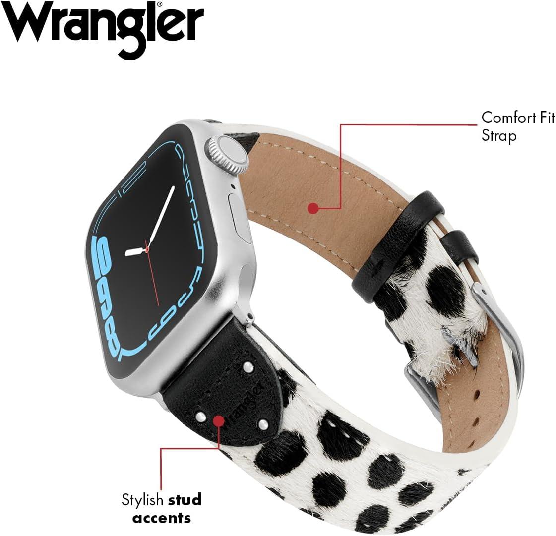 Wrangler® “Ranch Rider” Calf Hair Studded Band for Apple Watch®, Western Leather, Fits all Apple Watch® Series and Sizes(Black & White)