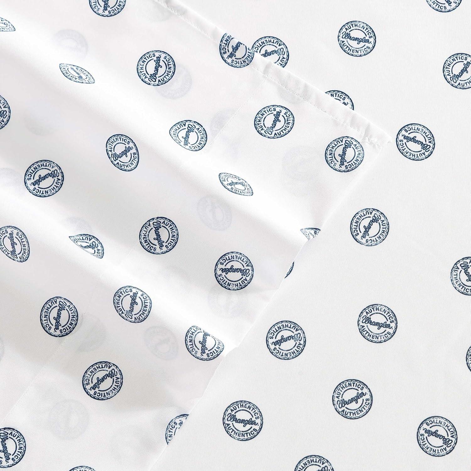 Wrangler – Twin Size Sheet Set, Ultra-Soft & Wrinkle-Resistant Bedding for Year Round Comfort, Deep Pockets, Bed Sheets with Matching Fitted Sheet & Pillowcase (Cowboy Pinstripe Blue)(Tossed Button Blue)