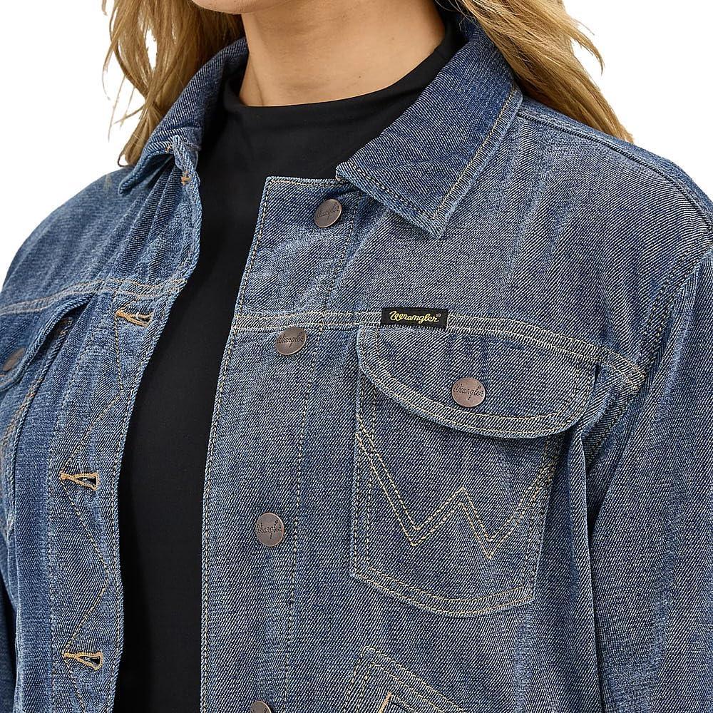 WranglerFit: RegularLining: UnlinedSleeve Length: LongFront Closure: ButtonsCollar: SpreadCuff: Single Button59% Cotton, 41% Polyester112372393Add a timeless western layer to your wardrobe with the Women's Airy Denim Western Jacket from Wrangler. Designed with a regular fit and unlined construction, this lightweight jacket is perfect for layering over tees or blouses in all seasons. It features a classic spread collar, long sleeves with single-button cuffs, and a button-front closure for easy wear. Crafted from a durable 59% cotton, 41% polyester blend, this jacket delivers comfort, style, and authentic western flair.