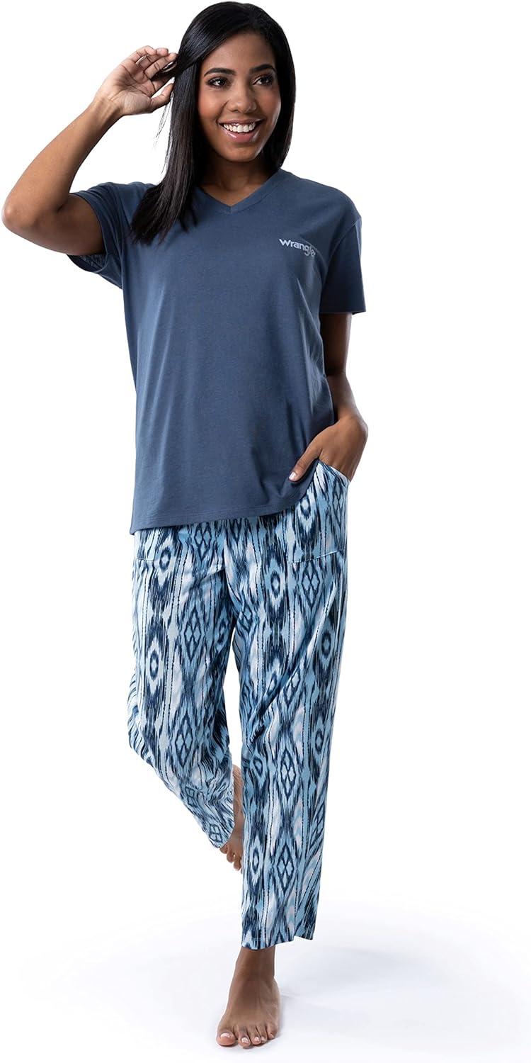 A women's sleepwear staple of cotton jersey construction, crewneck collar, relaxed fit, knee length, and handy left chest pocket with embroidered Wrangler logo, this timeless sleep shirt for women was made for a cooling and comfy night's sleep. Worn at bedtime or day lounging, it gives a nod to our American West heritage with its antique color scheme and Western-inspired prints. This missy and plus size sleep shirt can be worn on its own on warm nights or paired with sleep pants for more coverage.