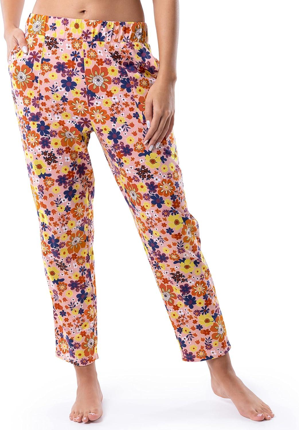 Wrangler Women’s V-Neck Short Sleeve Graphic Tee and Printed Pants Pajama Sleep Set(Rose/Floral)