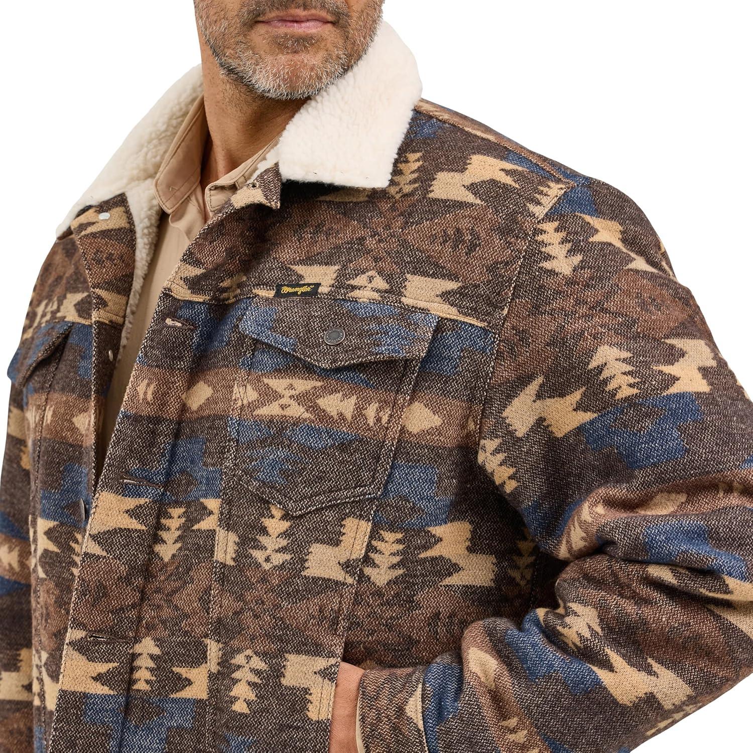 Wrangler Men’s Chocolate Torte Sherpa Jacquard Jacket(Chocolate)